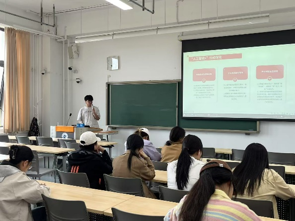 楚程明同志与陶铎同志向信息管理23及电子商务23团支部的同学们介绍了我国数字经济的整体发展现状与区域实践成果。聚焦“人工智能+”行动与数据要素市场建设深化举措,重点阐释了价值化的各个核心环节;结合区域实践成果,重点讲解了京津冀大数据协同创新、上海智能制造转型、山东工业互联网平台与农业数字化等典型案例。最后,他们结合算力基础设施升级、量子计算突破等前沿技术趋势,强调数字经济对全要素生产率的提升作用,倡导同学们关注国际竞争格局与安全挑战,把握政策机遇,推动数字技术与实体经济深度融合,为经济高质量发展贡献青年力量。