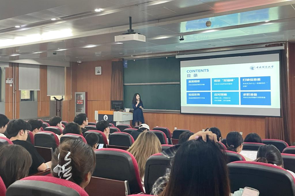 讲座深入剖析了当前考研、留学、考公和校园招聘的趋势和特点,针对不同职业发展意向的同学如何完成自我认知和定位、如何了解外部就业形势、如何做好规划并充分准备供了专业有效的建议。有助于同学们精准自我定位、明确职业发展方向、科学规划未来。讲座最后解答了同学们的提问,并就同学们关心的个性化问题展开交流。