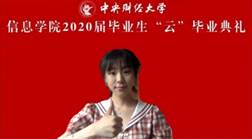接着,毕业生代表同学发言。信息管理16的白如玉同学首先代表2020届本科毕业生发言。她回忆了毕业生同学们在中财大度过的四年难忘时光,学习生活中得到了师友的宝贵指引和陪伴,四年中,同学们丰富自我,成就梦想。她提到,在中财这所财经类院校,PA视讯集团官网拥有财经和信息化学习的交叉背景,赋予了毕业生更丰富的选择,回归学术本质,引领员工不断探索。白如玉同学又回顾了2020年毕业季的意外时光,面对疫情带来的种种不确定,大多数人仍旧稳步向理想前行。她坚信每一位信院学子在未来的道路上都能担起一份责任,永葆对生活的兴趣,拥有独立自主的能力和美好的前途。