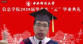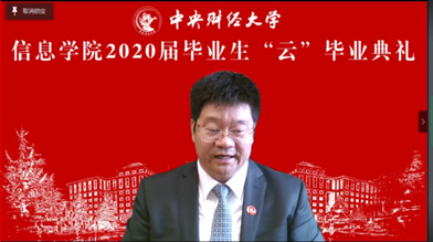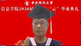 2020届研究生毕业生代表焦宇航同学回忆了自己从收到录取通知书到顺利毕业两年来一点一滴的心路历程,并表达了对同学、老师及家长的感谢。随着信息技术的发展,信院的影响力正逐步扩大,作为信院进步发展的见证者,焦宇航同学感到无比自豪。他希望所有同学面对纷繁复杂的未来世界,都能够认真思考“我要成为一个怎样的中财人”,不负师兄师姐,老师同学重托,用实际行动诠释“龙马担乾坤”的中财精神。最后,焦宇航同学祝愿所有毕业生们前程大好,一展宏图。