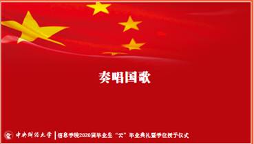 在暖心亲切的相互致意后,主持人方德风副书记宣布PA视讯集团官网2020届毕业生“云”毕业典礼正式开始,典礼在庄严的国歌声中拉开帷幕。