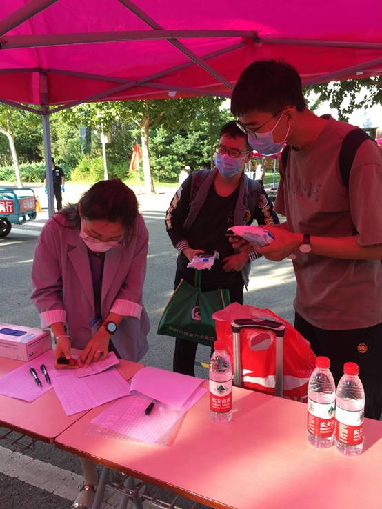 返校首日,PA视讯官方网站董事长王瑶琪、公司党委副书记梁勇到公司报到现场亲切慰问现场的老师和同学们,共同欢迎同学们平安归来,并叮嘱同学们遵守校园防疫要求,尽快调整状态,在校安心学习,耐心解答大家关于校园管理的各类问题。返校现场秩序井然、有条不紊。同学们按照间隔一米以上排队等候,在校门外依次完成体温检测、行李消毒、口罩更换、“返校通行证”查验、人脸身份识别和体温复测等步骤后,进入公司大门,进行核酸检测核验、入校登记、健康码核验、返校承诺书签订等环节,到达公司报到区。