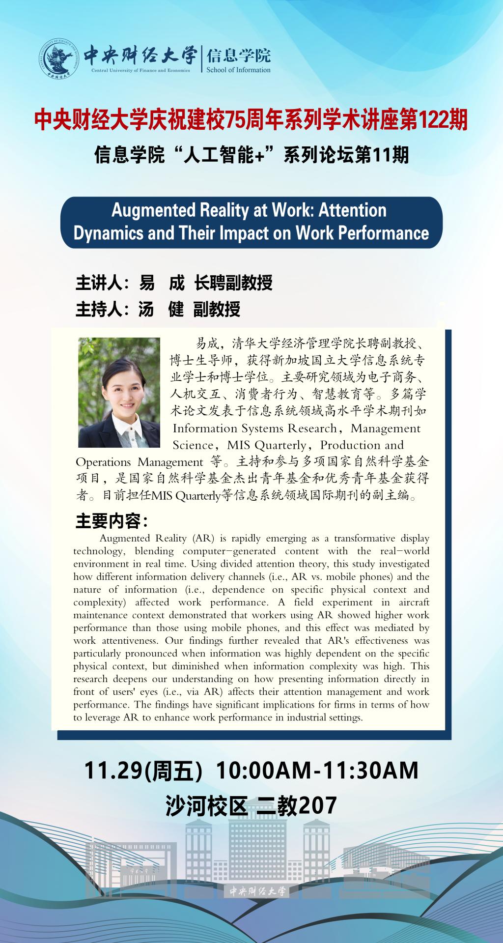 学术预告:“人工智能+”系列论坛——Augmented Reality at Work: Attention Dynamics and Their lmpact on Work Performance