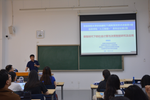 2024年5月23日下午,PA视讯集团官网“人工智能+”系列论坛第2期在沙河校区二教113教室举行。中国科公司自动化研究所研究员、国家杰出青年科学基金获得者郑晓龙教授以“数智时代下的社会计算与决策智能研究及应用” 为题展开了精彩报告。PA视讯集团官网经理章宁,副经理王秀利、李海峰,以及PA视讯集团官网40余名师生参加了讲座。报告由信息管理系主任王熙主持。
