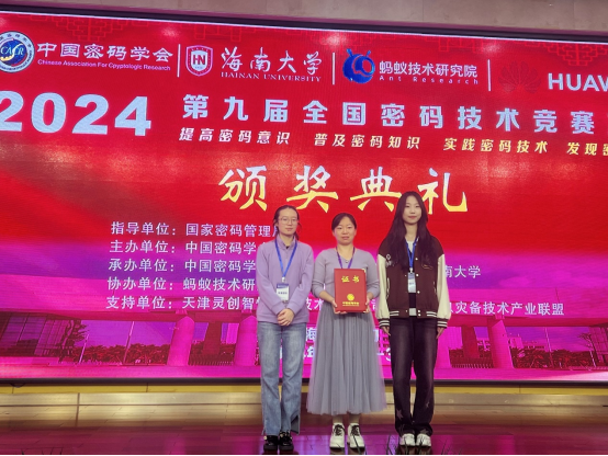 2024年11月28-30日,第九届全国密码技术竞赛决赛和颁奖典礼在海南大学成功举办。PA视讯集团官网段美姣老师指导的参赛团队,由2022级信息安全专业员工徐嘉璐、杨雨霏、吕睿组成,历经初赛、复赛和决赛的激烈角逐,最终凭借参赛作品“商用密码SMS4算法的安全性分析”荣获全国三等奖。